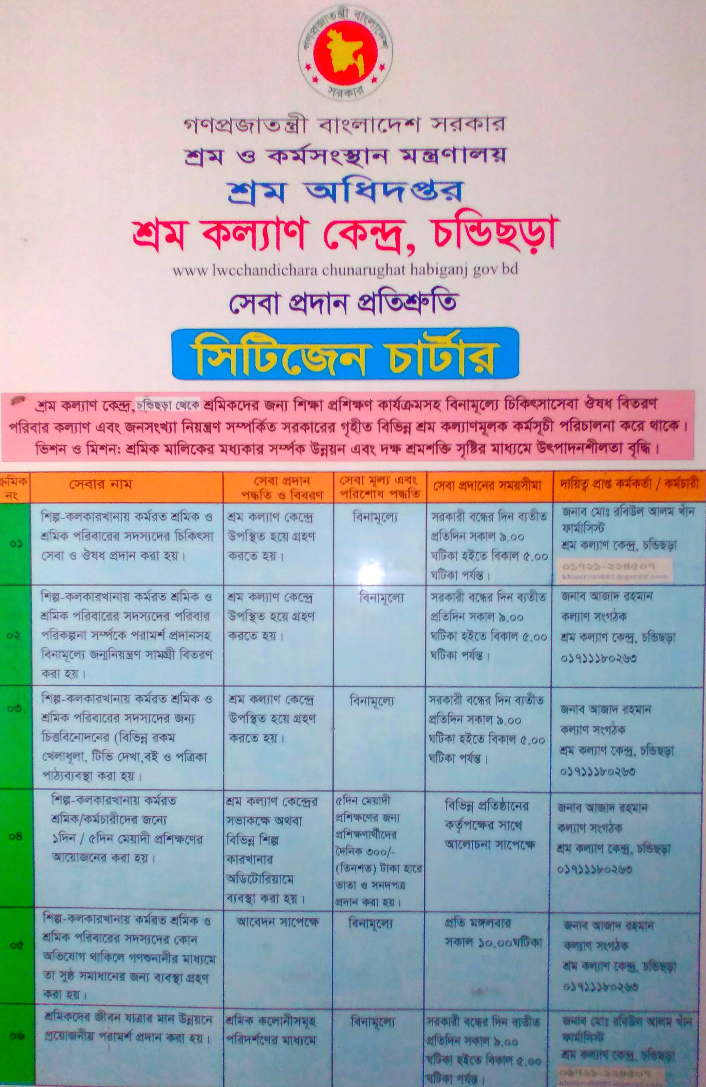 অধিদপ্তরঃ শ্রম অধিদপ্তর, শ্রম ও কর্মসংস্থান মন্ত্রণালয়।